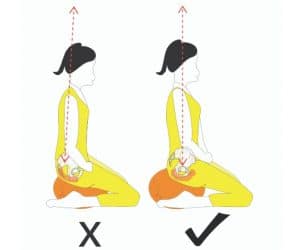 Omurganız oturma süresi boyunca, öne eğilmeye meyilli olduğundan, öne doğru düşebilir, ancak bunu fark ettiğinizde tekrar sırtınızı dik bir konuma getirmeyi hatırlamanız gerekebilir. Omurgayı dik tutmaya çalıştığınız yer kendinizi kastığınız bir yer değil, dik ve uzun oturuş halinde çabasızca kalabildiğiniz bir konfor alanı olabilmelidir. Bu hal ise zamanla, sabır ve deneyimle kazanılabilir.